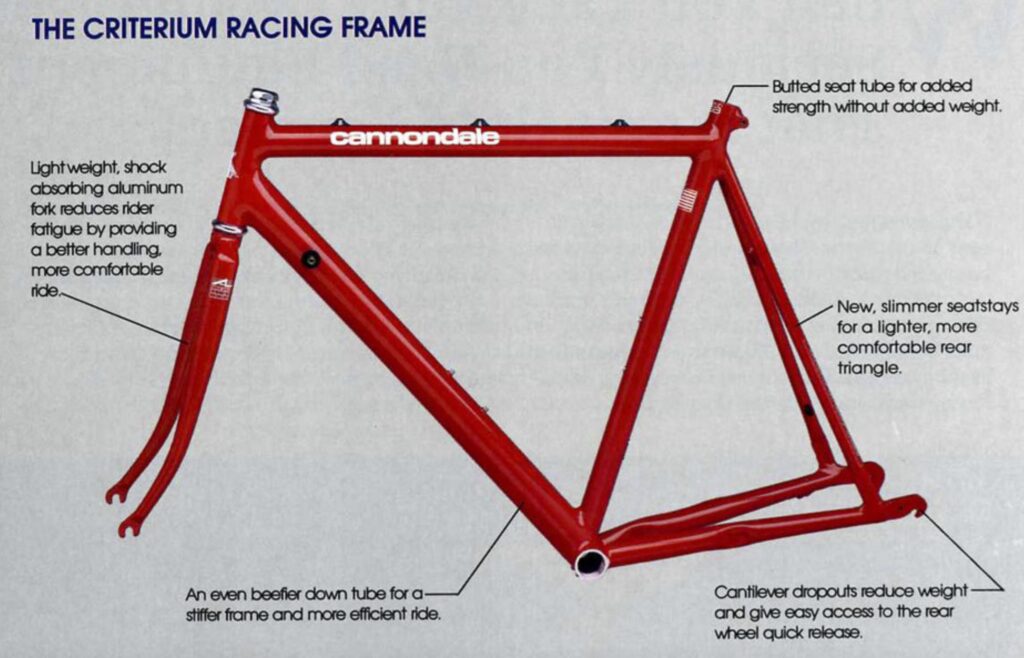 Většina hliníkových kol té doby (i dnes) má viditelné, housenkovité sváry (tzv. “penízky”). Cannondale ale své sváry ručně brousil a leštil. Přechody mezi trubkami tak byly dokonale hladké, plynulé, organické. Pod lakem to vypadalo, jako by byl rám odlitý z jednoho kusu, nebo jako by to byl moderní karbon. Byla to ukázka mistrovského řemesla a hrdosti “Made in USA”.